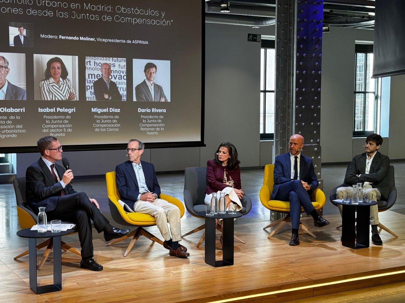 Una de ellas se tituló “Desarrollo Urbano en Madrid: Obstáculos y soluciones desde las Juntas de Compensación”, y contó con la intervención de Rafael Olabarri, presidente de la Junta de Compensación de Valgrande. La misma estuvo moderada por Fernando Moliner, vicepresidente de Asprima, y también contó con la presencia de Isabel Pelegrí, presidenta de la Junta de Compensación del sector 5 de Brunete; Miguel Díaz Batanero, presidente de la Junta de Compensación de Los Cerros; y Darío Rivera, presidente de la Junta de Compensación de Retamar de la Huerta.